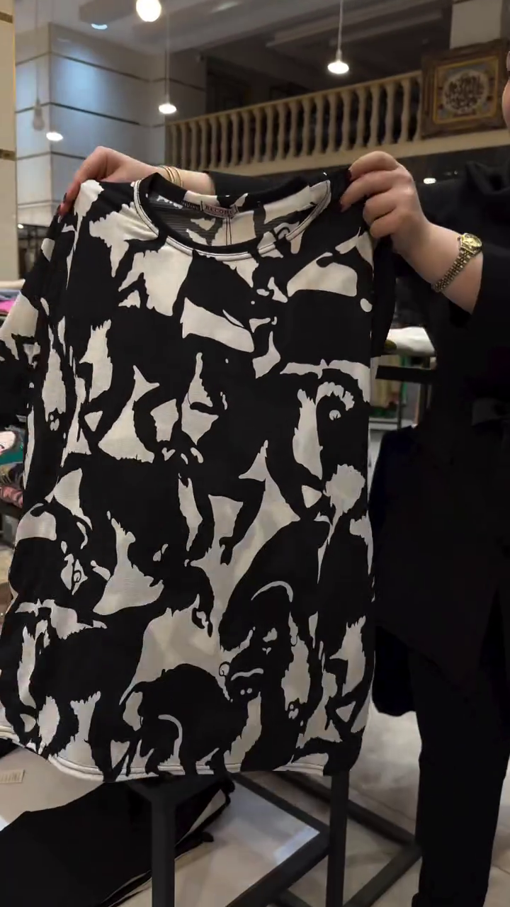 This bold statement top π€ features an abstract ivory brushstroke pattern π¨ over a black base for high-contrast artistic styling β¨. The round neckline π keeps the design clean while the relaxed silhouette ensures comfort βοΈ.