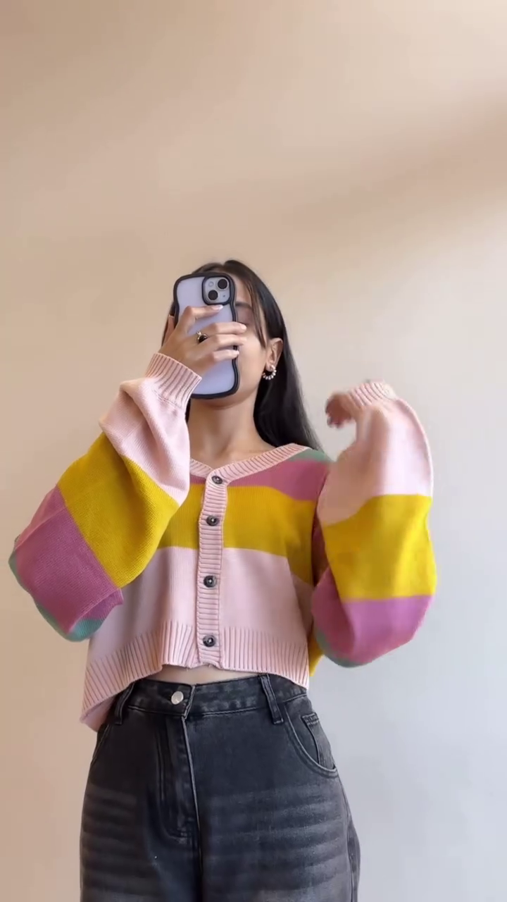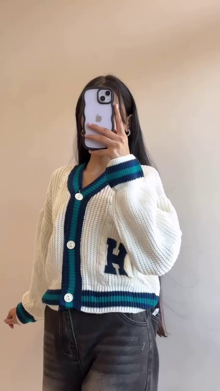 Each sweater in this collection tells a story — the deep burgundy flare-sleeve top brings bold sophistication with golden button details, perfect for making a statement 🌹. The ivory-teal varsity cardigan channels playful streetwear vibes with its retro stripes and oversized comfort 🧶. And the minimal beige V-neck knit is your go-to for that clean, neutral, and effortlessly classy everyday look ☕🤍.
