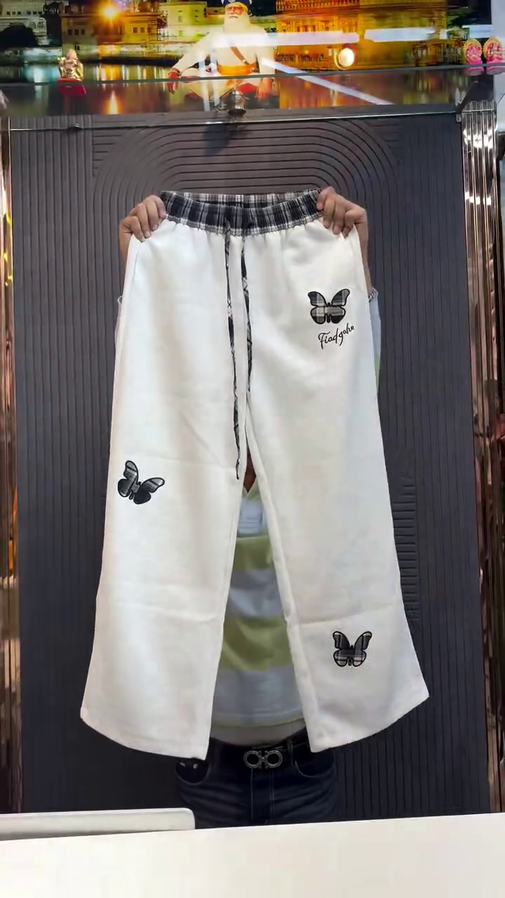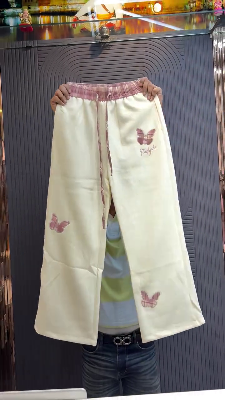 π€π¦ Soft cream lounge pants designed with delicate pink butterfly prints and stylish elastic waistband with adjustable drawstring π. The wide-leg relaxed silhouette ensures maximum comfort π and effortless movement π.