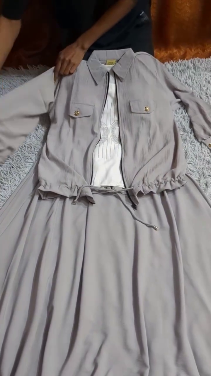 🧥 Light gray jacket with adjustable drawstring waist