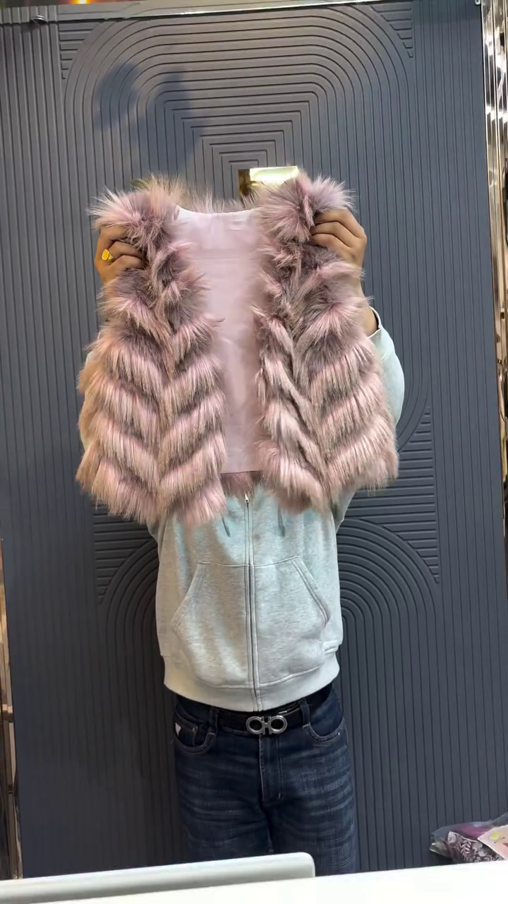 This grey and black faux fur cropped vest ❄️ is a stylish layering piece that instantly adds texture and luxury to your look. The plush fur design features a mix of grey base with darker patches, creating a striking pattern while remaining versatile with many outfits. The sleeveless, open‑front silhouette makes it easy to throw over hoodies, sweaters, dresses, or tops without feeling bulky. Its cropped length highlights the waist and works beautifully with high‑waist jeans, skirts, or trousers. A smooth inner lining ensures comfortable wear, even over long sleeves. Ideal for parties, dinners, photoshoots, or casual winter outings, this vest transforms a simple outfit into something special. Pair it with boots and minimal jewelry to let the fur texture stand out. 💫