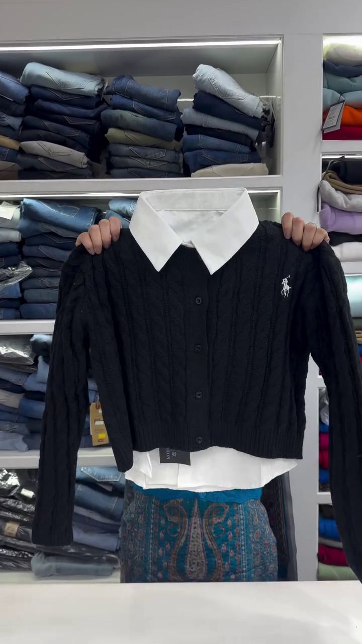 The chest embroidery has been removed to keep the focus on the craftsmanship and comfort. Whether styled with jeans or trousers, this cardigan is your go-to for timeless layering 🧵👖.