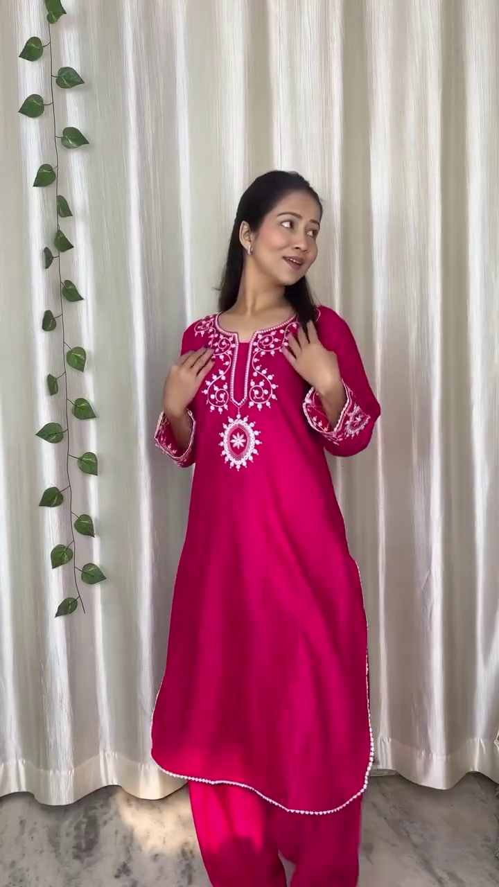 The three-quarter sleeve design and relaxed fit structure provide a balanced look that is both modest and stylish. The deep red color brings a bold yet sophisticated appearance that works well for daytime or evening wear.