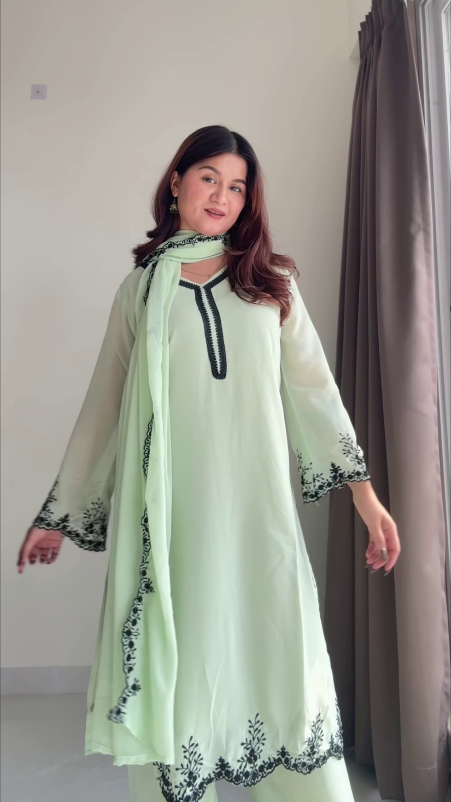 Complementing the kurta is a soft lavender chiffon dupatta ππ§£ that adds a beautiful color contrast against the deep black base. The airy drape flows effortlessly, creating a graceful and elegant finish to the complete look π¬οΈβ¨. Pair it with statement earrings and minimal heels for a refined traditional ensemble π π.