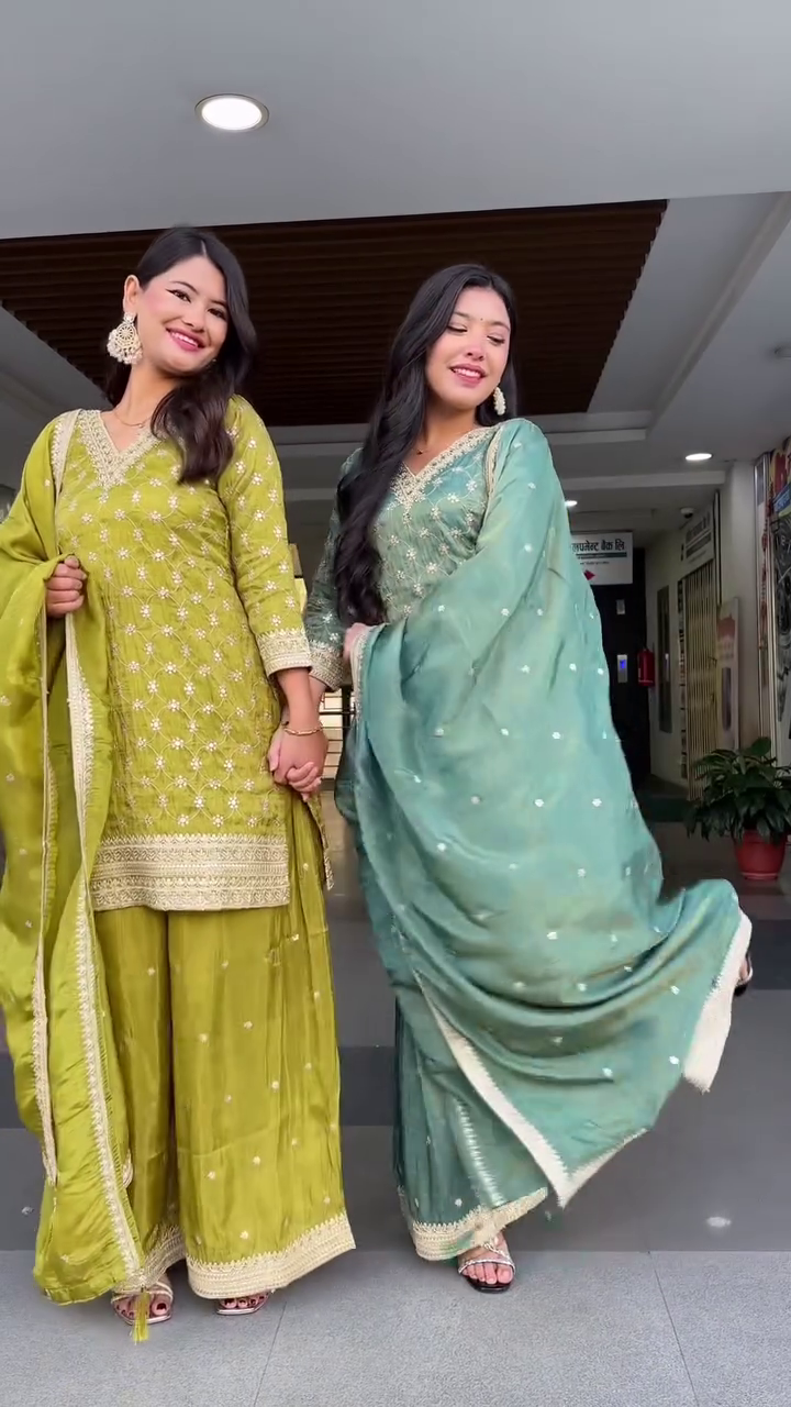 Celebrate festive fashion with these stunning Radiant Pastel Luxe Embroidered Sharara-Kurti Ensembles available in two gorgeous huesβAqua Blue π β¨ and Olive Green πΏπ. Perfect for daytime weddings, mehendi functions, festive brunches, or coordinated bestie looks, these outfits blend grace with shimmer effortlessly.