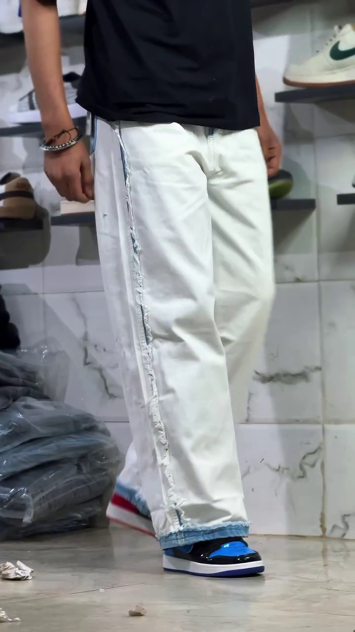 Break the mold with these white wide-leg jeans featuring frayed side seams and a peek of blue denim at the hem π¬οΈπ. The layered look adds depth and dimension, while the relaxed fit invites movement and freedom πΊπ¨.