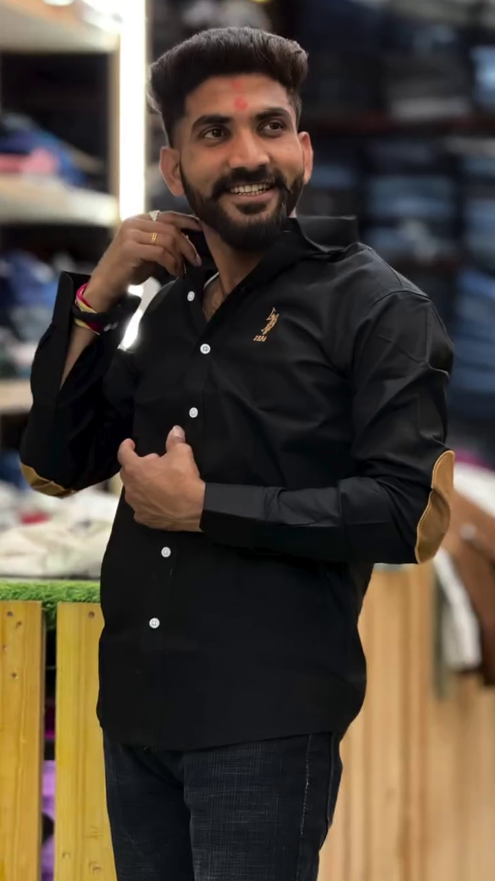 The shirt includes full-length sleeves, button cuffs, and a structured collar, maintaining a classic shirt silhouette.