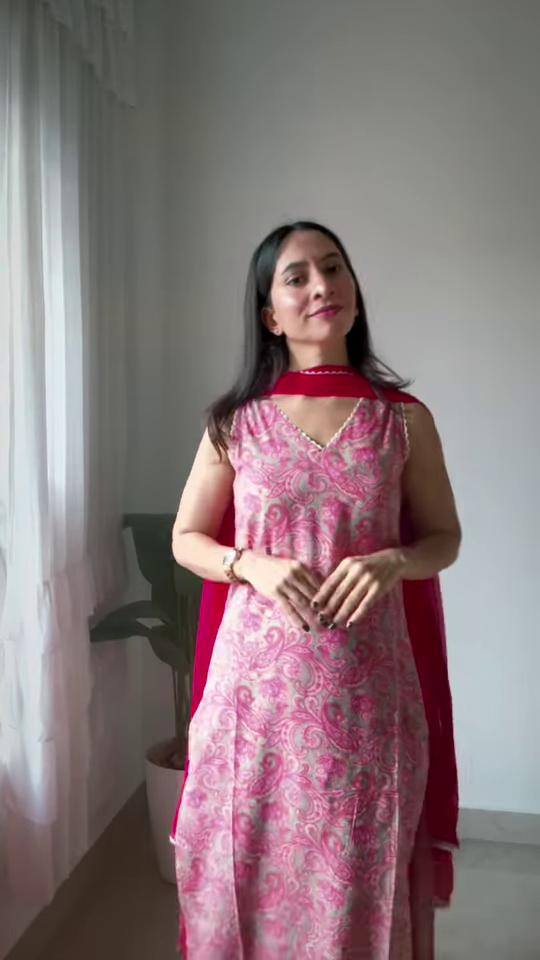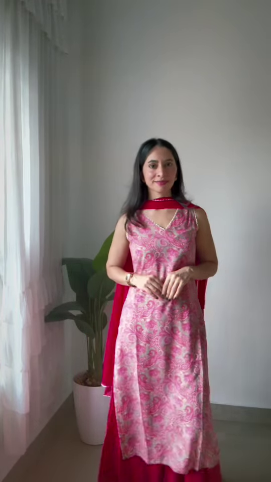 With its V-neck design and sleeveless silhouette, this outfit is both modern and traditionalβideal for summer gatherings, casual festive events, or even work-from-home ethnic days.